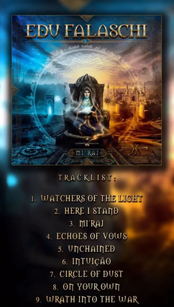 O vocalista Edu Falaschi divulgou nesta terça-feira (3) a capa e a lista de faixas de “Mi’raj”, o álbum que encerra sua trilogia conceitual. O disco, que chega em junho de 2026, segue “Vera Cruz” (2021) e “Eldorado” (2023).