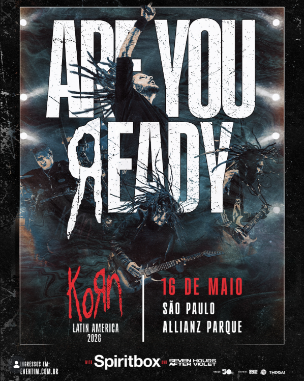 A banda Korn se apresentará em show único no Brasil, no dia 16 de maio, no Allianz Parque, em São Paulo. Os ingressos ainda estão disponíveis para compra pela plataforma Eventim e na bilheteria oficial do local.