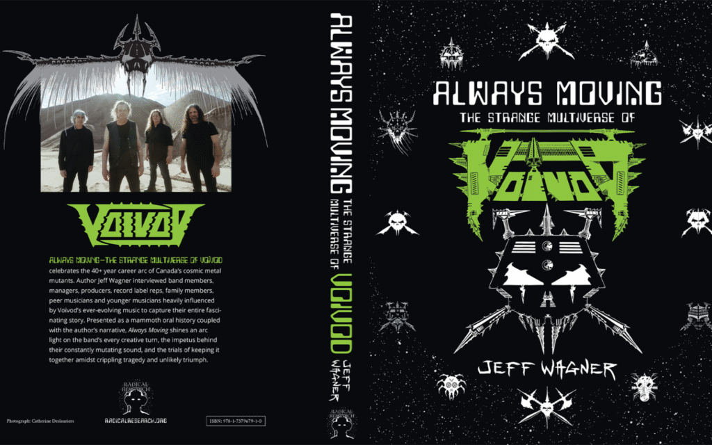 Livro sobre Voivod “Always Moving: The Strange Multiverse of Voivod” será lançado em 17 de novembro de 2025 pelo selo Radical Research, reunindo 540 páginas e um encarte colorido de 12 páginas para narrar mais de quatro décadas da banda canadense de metal progressivo.