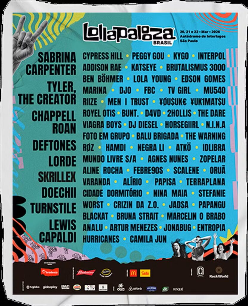 Faltam menos de dois meses para o Lollapalooza Brasil e a edição de 2026 chega reforçando a força da curadoria e o compromisso do festival com a diversidade artística. Ao longo dos dias 20, 21 e 22 de março, o Autódromo de Interlagos recebe um line-up que reúne mais de 70 atrações nacionais e internacionais, 18 deles se apresentando pela primeira vez no Brasil. O cartaz também inclui cinco dos 15 nomes mais pedidos pelo público. Ao lado de headliners globais como Sabrina Carpenter, Tyler, The Creator, Lorde, Skrillex, Deftones e Chappell Roan, o evento segue ampliando espaço para artistas que representam diferentes territórios e momentos da música contemporânea.