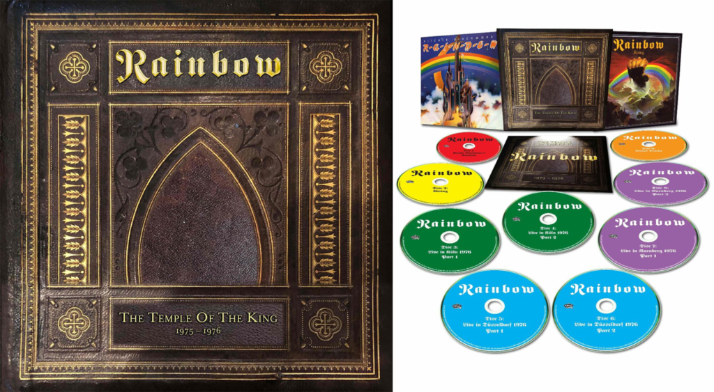 O Rainbow está lançando um box set de ‘The Temple of the King’ que reúne nove CDs cobrindo o período 1975-1976 da banda comandada por Ritchie Blackmore, com novos masters, shows completos na Alemanha e faixas raras em CD pela primeira vez.