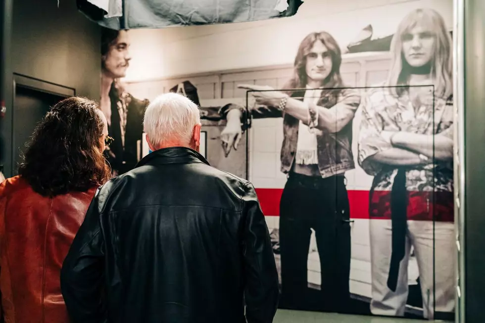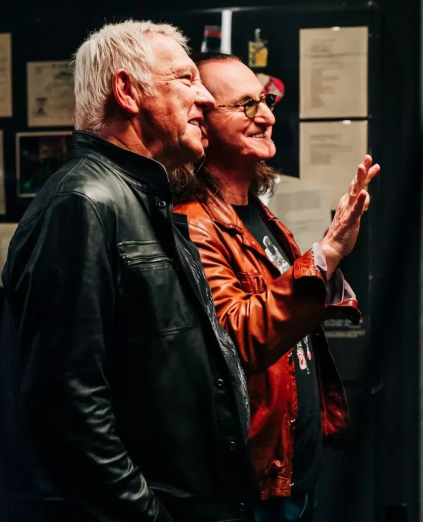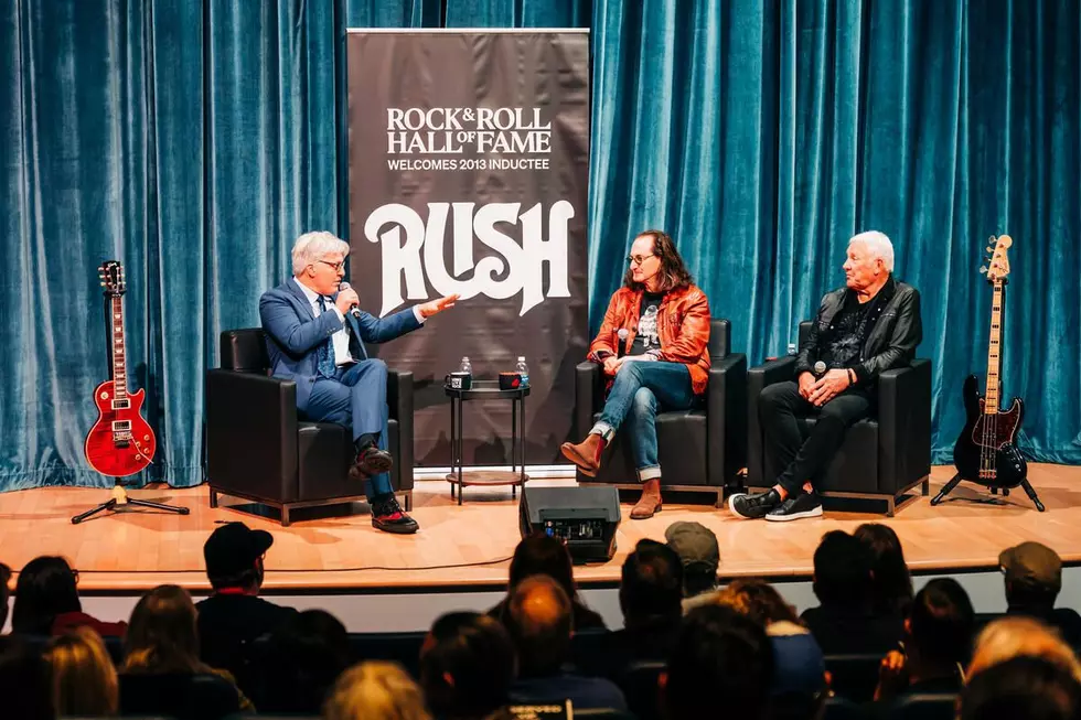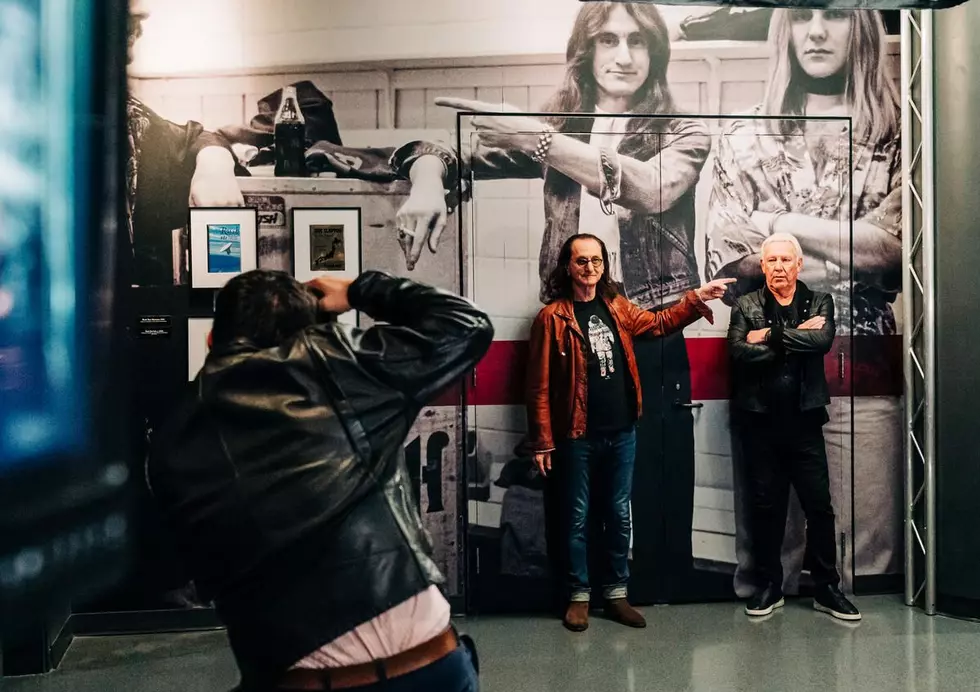 Diante de fãs e convidados selecionados, a dupla apresentou uma galeria de fotos inéditas com registros dos bastidores da celebração. A radialista Donna Halper — a mesma que, em 1974, tocou “Working Man” na WMMS-FM e ajudou a lançar o grupo nos Estados Unidos — subiu ao palco para introduzir os músicos, antes de um bate-papo descontraído mediado pelo jornalista Geoff Edgers.