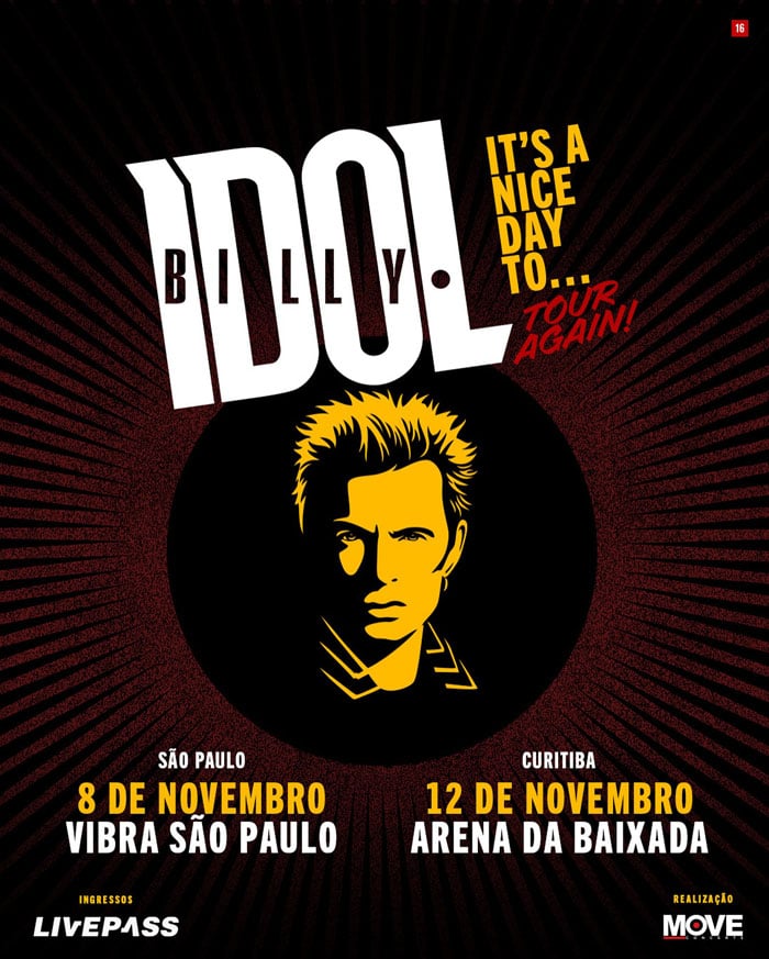 Os ingressos para as duas datas da turnê de Billy Idol podem ser adquiridos por meio do site da Livepass. A atual turnê promove o álbum “Dream Into it”, lançado em abril deste ano, que marca o nono trabalho de estúdio da carreira solo do cantor.