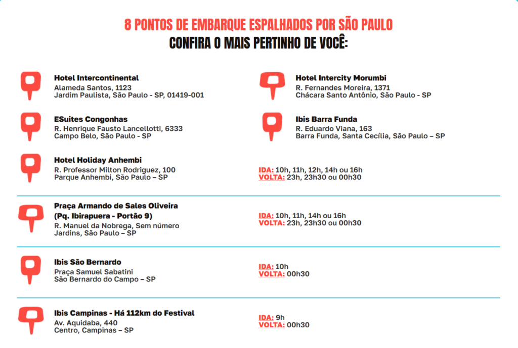 - Horários: Abertura dos portões às 12h. Entrada permitida até as 00h.