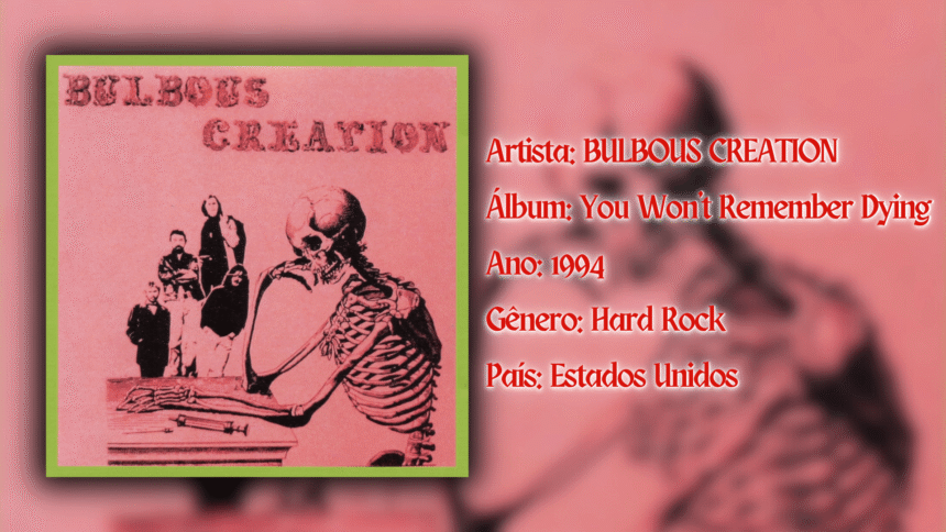 BULBOUS CREATION foi uma banda de Hard Rock estadunidense, da região de Missouri – Kansas, que gravou entre 1969 e 1970, apenas esse raro disco, intitulado “You Won’t Remember Dying”. A banda liderada por Paul Parkinson (guitarra rítmica e vocais) contava também com Jim Wine no baixo, Chuck Horstmann na bateria e Alan Lewis na guitarra.