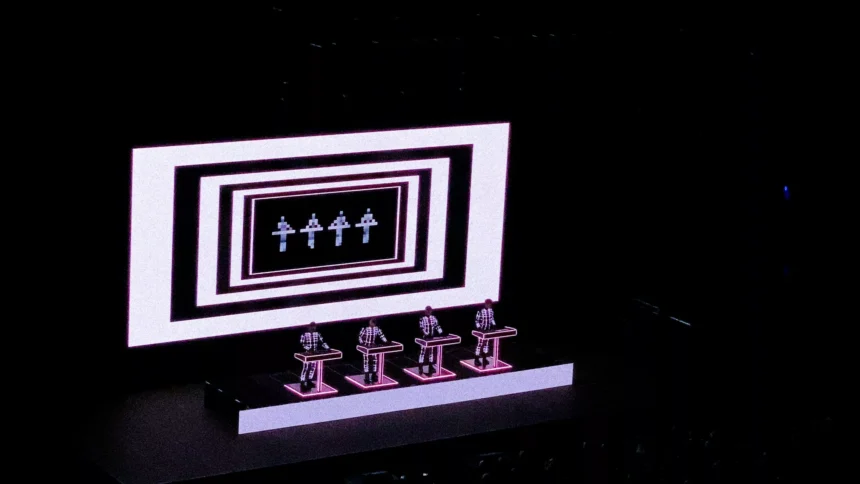 O concerto em Sydney foi uma celebração, foi algo muito além de uma apresentação musical, foi mais uma vez a confirmação de que o futuro que eles previram 50 anos antes, já aconteceu, e muito mais ainda por vir foi mostrado pra um público de 9 mil pessoas, que lotaram o Super Aware Theatre, um teatro magnífico e moderno no coração de Sydney. Uma plateia totalmente abduzida e empolgada acompanhou quase incrédula tamanha perfeição em cada detalhe nas projeções visuais, nas luzes, nos teclados e synths, tudo absurdamente impecável. O Espetáculo foi iniciado de cara com “Number/Computer World” não muito depois veio “The Man-Machine” levando o público a ficar de pé e dançar todas as músicas dali em diante até o final do show, sem deixar de observar os detalhes e tecer comentários sobre os efeitos visuais perfeitos, reproduzidos em uma tela gigantesca atrás dos quatro integrantes e seus teclados. O show ainda contou com todas as músicas clássicas do grupo, “Autobahn”, “The Model”, “Tour De France”, encerrando com “Trans-Europe Express” e depois retornado ao palco a pedido da plateia para mais três músicas entre elas “The Robots” em uma homenagem emocionante à Florian Schneider, falecido em 2020.