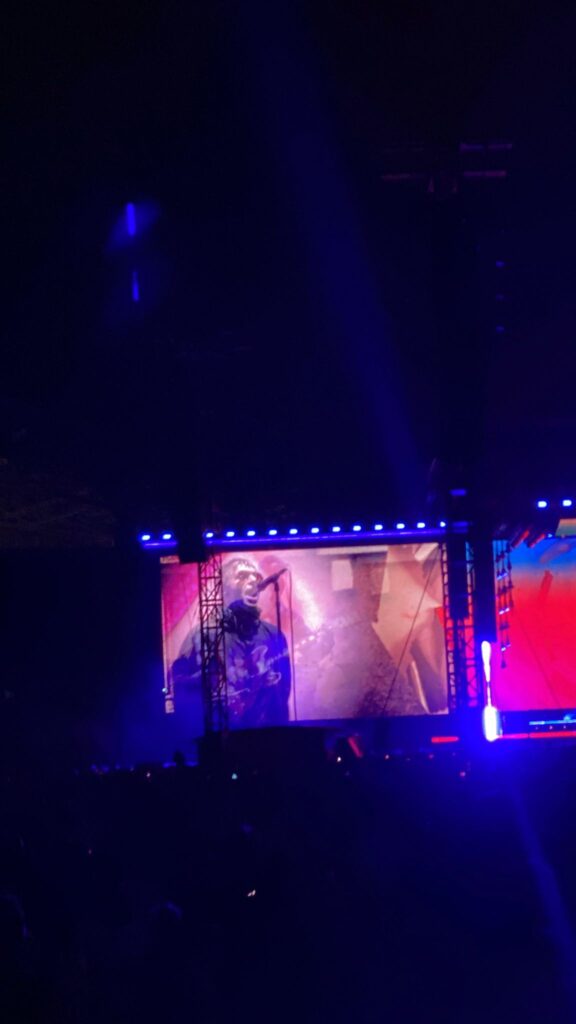 Mesmo com relatos pontuais de falhas de som em setores mais distantes no início do show — nas três primeiras músicas, a voz de Liam estava encoberta pela altura das guitarras —, tudo foi prontamente ajustado após um gesto contido e educado de Liam, que tocou o microfone e, em seguida, apontou para cima, como quem pedia um pouco mais de potência em suas melodias rasgadas.