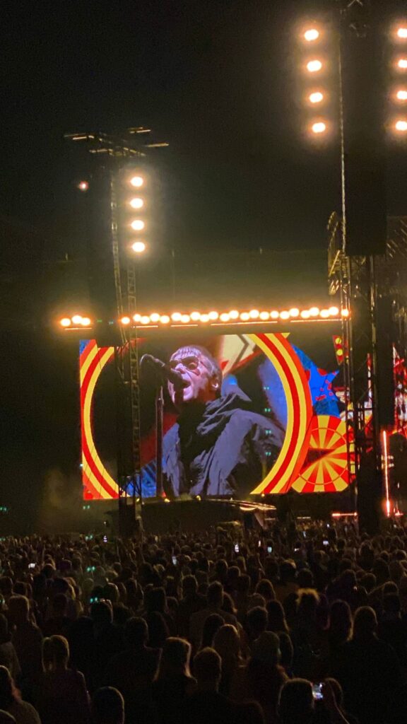 A abertura ficou por conta da banda australiana Ball Park Music, que aqueceu o público com entusiasmo. Mas a verdadeira erupção começou assim que Liam Gallagher surgiu no palco, com sua clássica postura — irônico, provocador, com o humor ácido típico britânico e o olhar desafiador. Noel Gallagher o acompanhou com seu habitual ar sereno, como quem sabe exatamente o peso das notas que vai tocar.