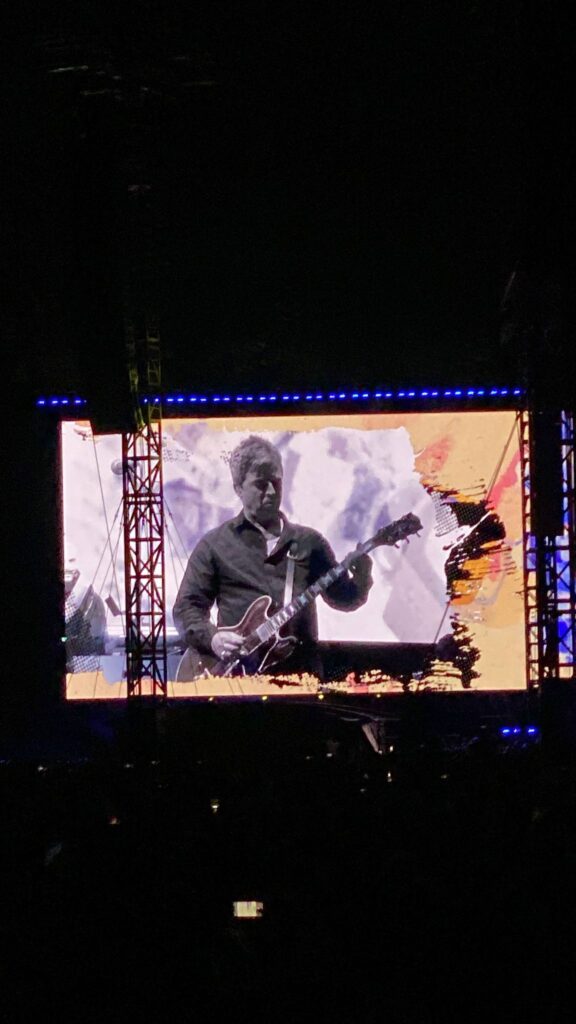 Também houve espaço para surpresas: “Half the World Away” e “Slide Away” — esta última, uma das músicas mais cruas da banda e queridinha dos fãs mais saudosos, definitivamente a minha preferida — despertaram lágrimas e abraços entre gerações. Era como se cada música abrisse uma janela para uma época, um sentimento, um pedaço da vida de quem estava ali.