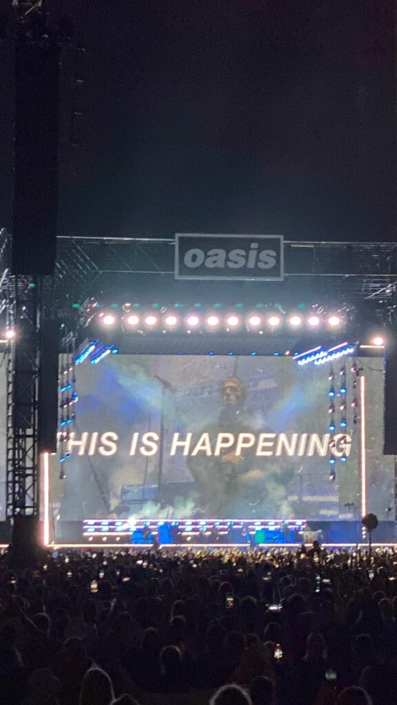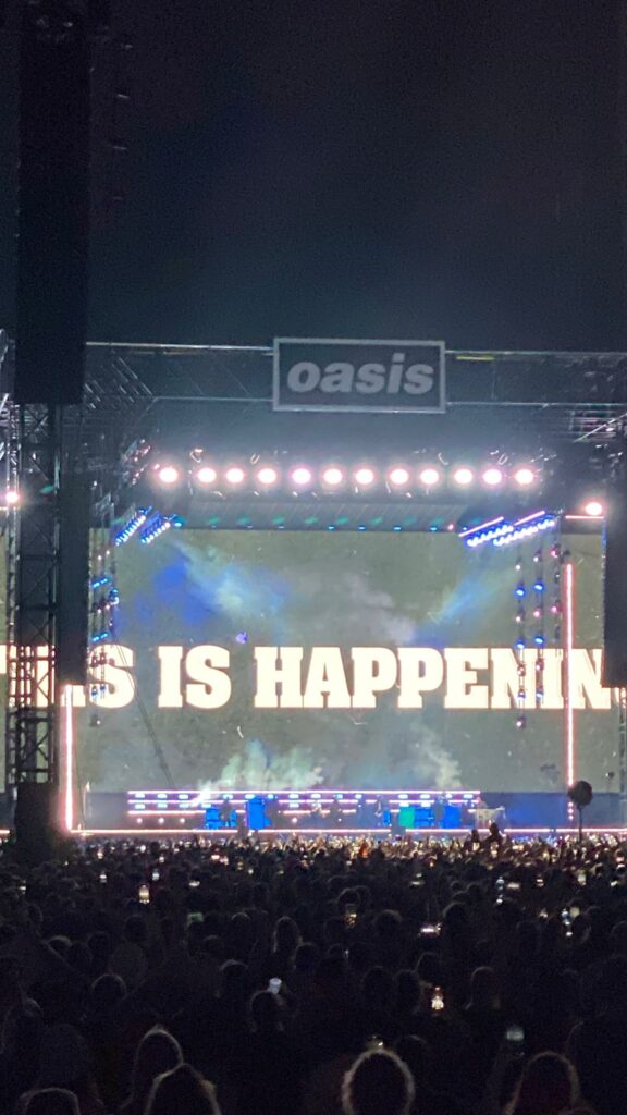 Desde o anúncio da turnê Live ’25, a expectativa vinha crescendo como uma onda. Opiniões dividiam os fãs — muitos deles, embora esperançosos, temiam qualquer conflito durante a tour e um inesperado rompimento novamente em meio aos intervalos das apresentações. Mas, quando o logo preto e branco do Oasis iluminou os telões do Accor Stadium, o impossível se tornou real.